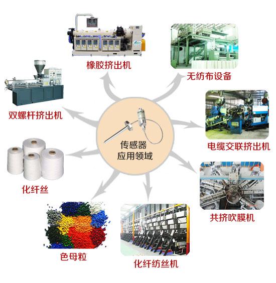 橡膠擠出機(jī),塑料擠出機(jī),塑膠押出機(jī),電纜押出機(jī),紡絲機(jī),注塑機(jī),熔體泵,無紡布設(shè)備等機(jī)械行業(yè),產(chǎn)品大量配套于無紡布,色母粒,化纖紡絲,橡膠,塑膠等諸多產(chǎn)品行業(yè)中,水處理,食品機(jī)械行業(yè)市場(chǎng)。為我公司環(huán)保型高溫熔體壓力傳感器,高溫熔體壓力變送器主導(dǎo)對(duì)象。